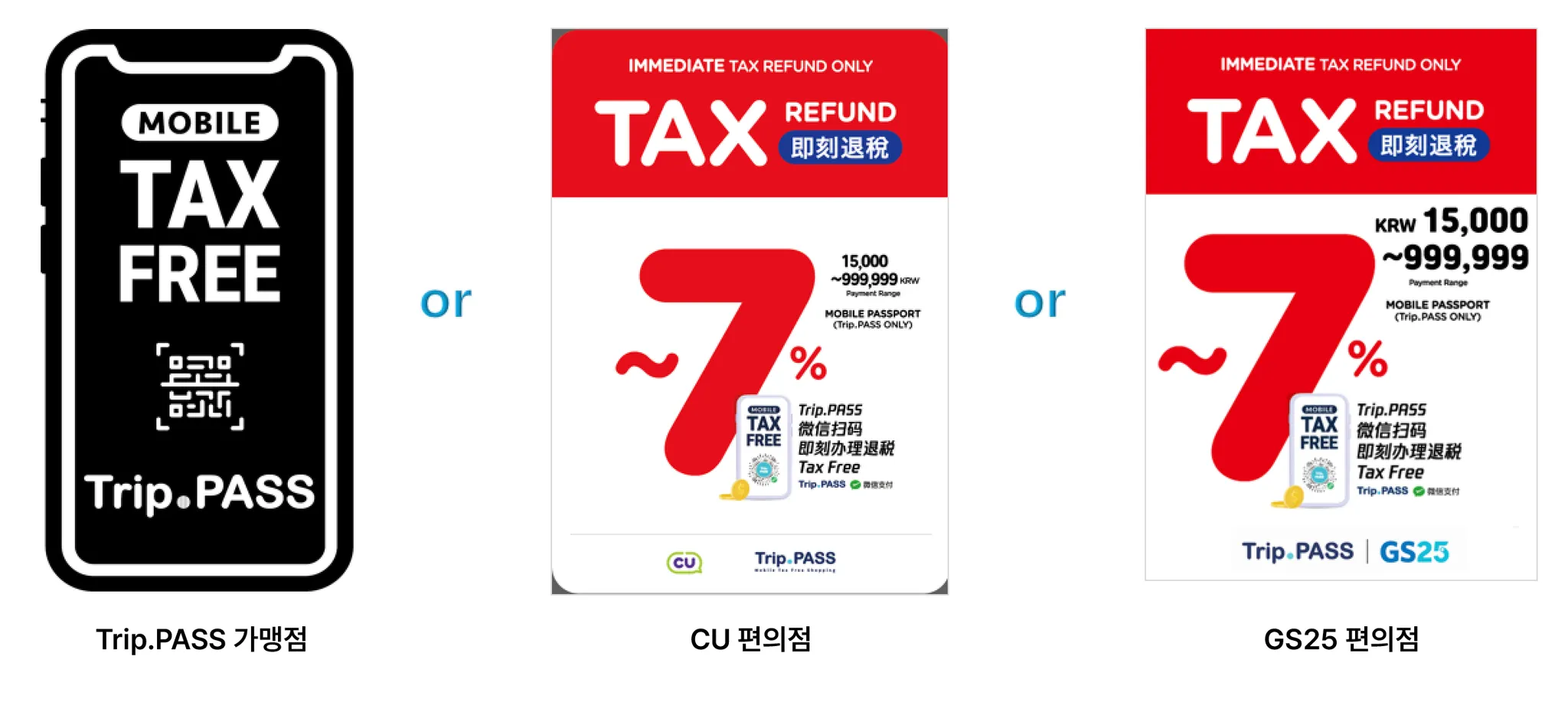 Immediate tax refunds are available at over 700 convenience stores nationwide (CU, GS25) and more than 1,000 Trip.PASS partner stores.